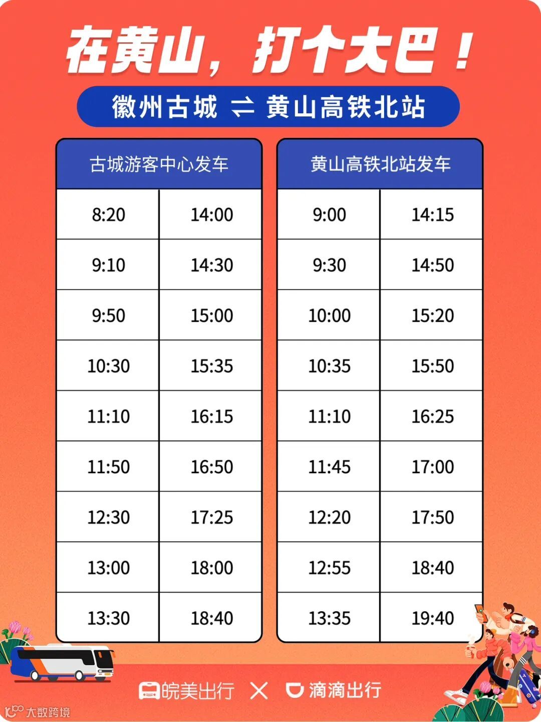 徽州古城⇌黄山北站发班时间:8:20~18:40