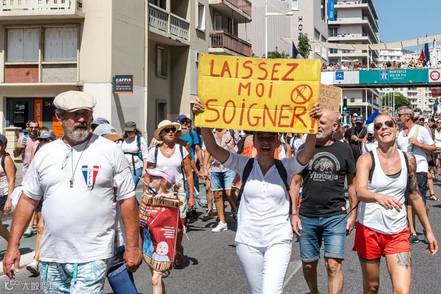 8月28日,法国多个城市爆发抗议,反对政府推行“健康通行证”制度及医护人员强制接种规定。法国内政部数据显示,全国参与人数达16万,仅巴黎就有上万人参加。多数抗议者未佩戴口罩,亦未保持社交距离。冲突导致3名警察受伤,16人被逮捕。此类抗议已持续七周,民众对防疫限制的不满持续发酵。
