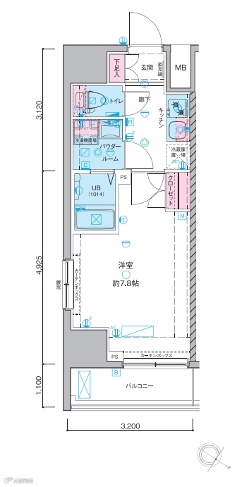 即便是室内实用面积25平米的小户型,日本的设计师仍旧依靠着令人叹为观止的空间折叠技术使得房屋内部称得上麻雀虽小,五脏俱全。建于墙角的厨房操作台,干湿分离的卫浴,甚至盥洗室亦是于浴室隔开。