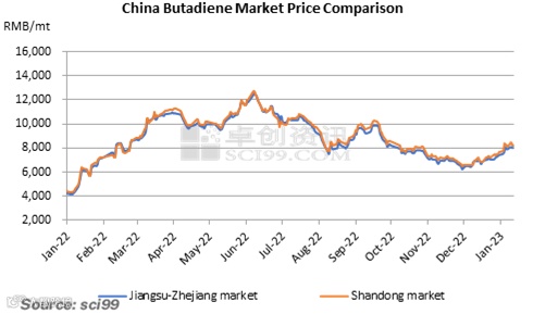 Snapshot: China’s butadiene market remained in an upswing from December 2022. Until early January 2023, the market price of butadiene in China surged to a periodical high level. On January 3, 2023, the daily butadiene market price hiked by 8.4% in a single day, hitting the highest increment within one day. However, the high butadiene price didn’t last for a long time and fell back again.