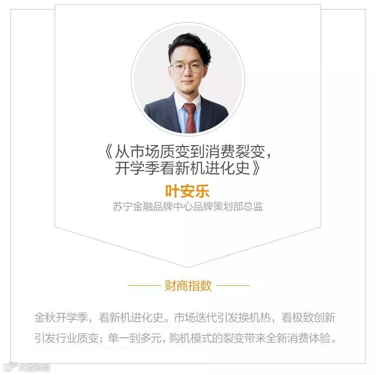 《财富思享会》新一期节目《从市场质变到消费裂变,开学季看新机进化史》中,将采取两位嘉宾对话的形式,苏宁金融品牌中心品牌策划部总监叶安乐,与在校研究生Tony,共同讨论如何选择适合自己的购机方式,工作和学习前先给自己打个气——不花冤枉钱就能购置一台高性价比的装备。