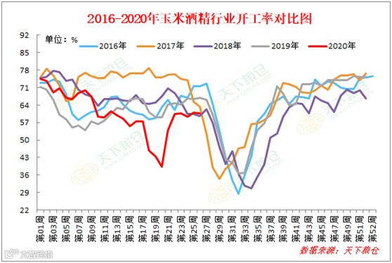 酒精企业行业开工率63.05%,较去年同期的67.04%下降3.99个百分点,整体开机处近几年同期的最低位。