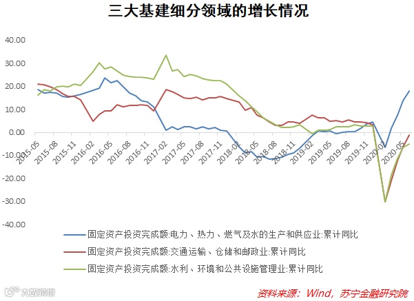 中国的基础建设投资,主要指的是交通运输、仓储和邮政,电力、燃气及水的生产和供应业,水利、环境和公共设施管理业这三个国民经济行业分类的投资额总和。