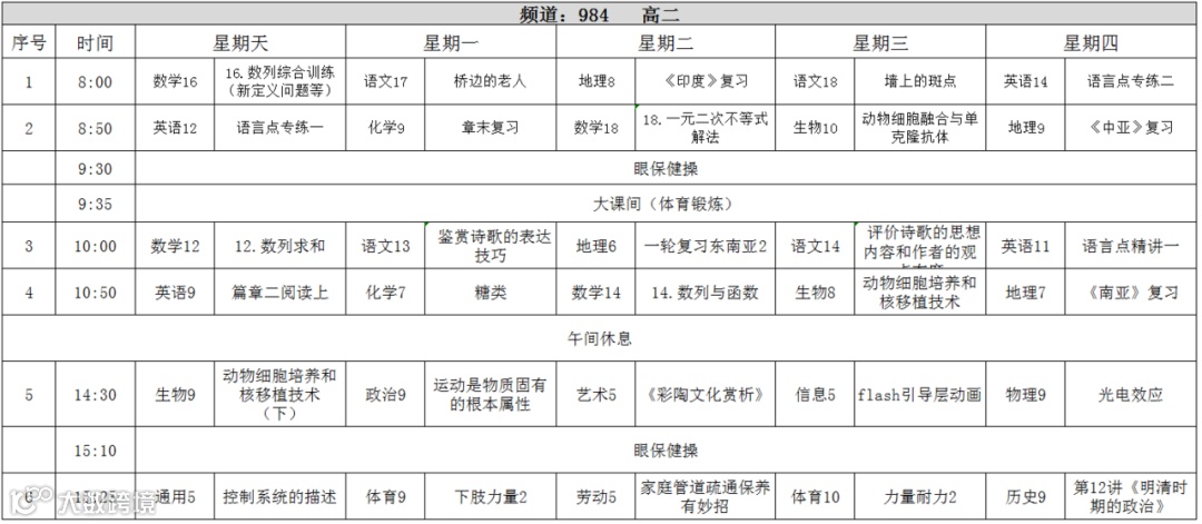 *高中阶段课程表*