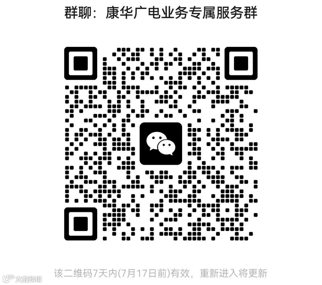 为高效落实为群众办实事,让用户少跑腿的服务宗旨,广电网络城区分公司将于7月11日-12日(11:00-13:30),7月18日-19日(11:00-13:30)在康华医院食堂开展广电便民服务活动,届时,所有康华医护人员凭身份证原件现场报装即可享受特惠活动及领取精美礼品,扫描二维码可加入“康华广电业务专属服务群”,进行线上咨询及报装!