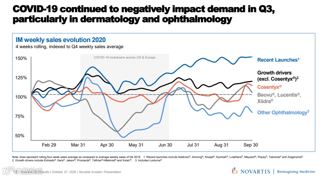 10月27日,诺华发布2020前3季度业绩报告,净销售收入358.89亿美元,同比增长4%;核心营业利润119.15亿美元,同比增长16%。