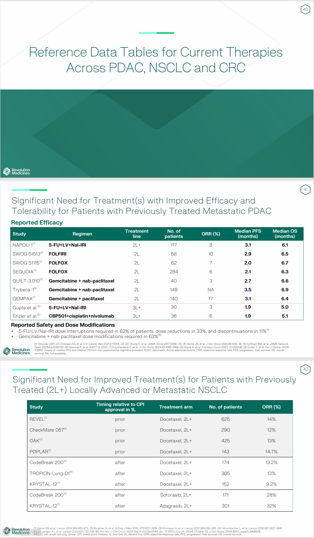 第二,我们正推进一线转移性胰腺癌注册试验,计划设三臂,对比 daraxonrasib 单药或 daraxonrasib + 化疗与化疗。今年晚些时候,我们将公布试验设计及相关联合用药数据,并启动试验。