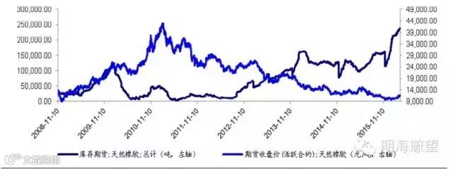 此外,天然橡胶近期价格的走势(图6)与交易所库存呈现了明显的“剪刀差”格局,暗藏了做空动能随价格上升的变盘迹象。