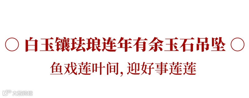 灵感来源于诗句“鱼戏莲叶”,“莲”与“连”谐音,“年”与“鲶”谐音,“鱼”与“余”谐音,因此寓意 “连年有余”。