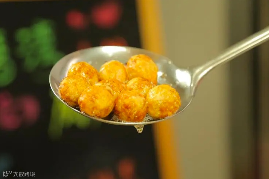 下180度油锅“弹跳穿梭”,带焦黄色时,便入酥脆之境。