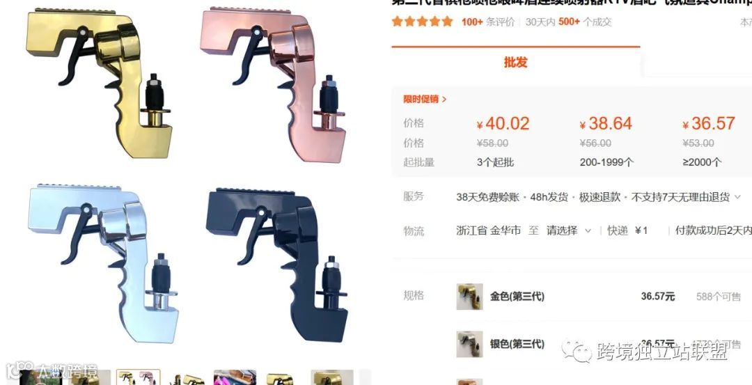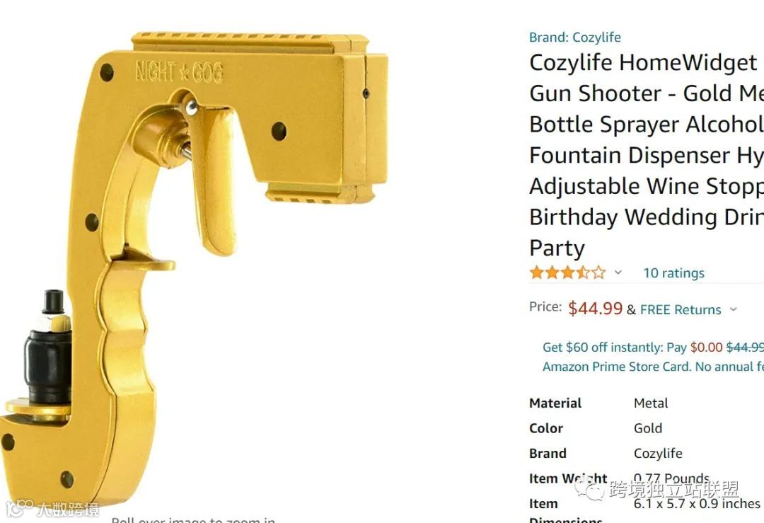 啤酒枪:可兼容啤酒、红酒、香槟、可乐等多种饮品,支持最高30英尺水流喷射,兼具倒酒与密封功能,可用作瓶塞。产品轻便实用,能营造聚会氛围,被称为“居家必备良品”。亚马逊售价44.99美元(约合286.9元人民币),国内1688拿货价低廉,毛利率可达80%左右。