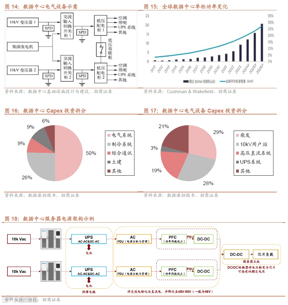 三、智算需求推动数据中心资本开支高增,算力的电力配套需求与壁垒均在提升