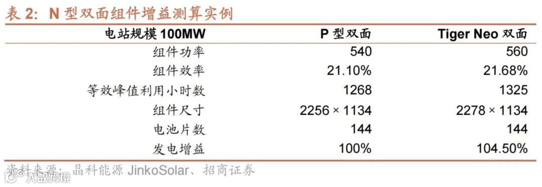 Ø 发电量溢价会在明后年逐渐体现。年初以来,已有国电投、中核汇能、华电等多个项目开始N型项目招标,从实际招标情况看,TOPCon组件价格较同版型PERC已经享受一定的溢价,售价端单W高0.1元左右,大致反应了高功率带来的成本摊薄收益。而发电量提高带来的收益需要一定时间验证,因此这部分溢价尚未完全在招投标中反应。