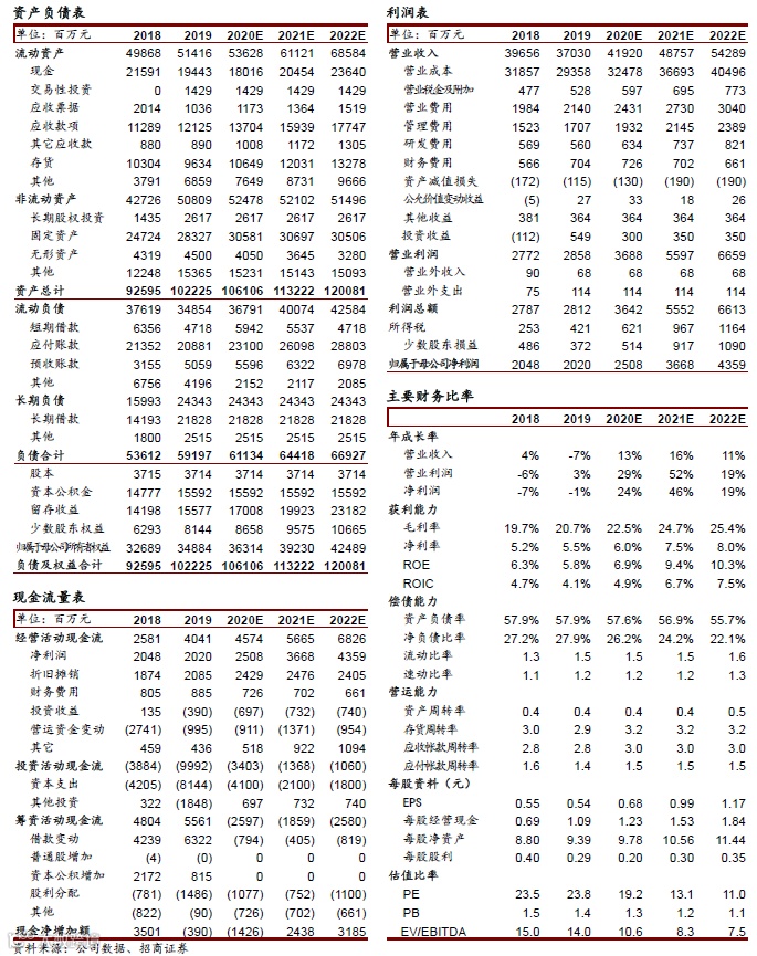 特变电工传统业务盈利情况正在稳步恢复。特变是全球最大的变压器公司,输变电设备总体规模国内领先。过去一个较长时期,随着下游投资萎缩、大客户招标政策导向、电网扶持体系内供应商等原因,行业盈利能力大幅下降(变压器国企纷纷亏损),近几年电网公司招投标政策比之前更合理;同时,电网近期剥离传统装备制造,预计公司输变电盈利能力会进一步向上回归。公司很早就在布局海外市场,在中东、东南亚、非洲长期布局并 已形成了一定优势,2019年在手订单超60亿美金,2020年受疫情影响大,预计未来几年公司海外成套收入有望快速增长。行业维度看,海外输变电产业有可能正在迎来新的景气周期(美国与欧洲存量电力设施改造,新能源发电与电动车发展后带来的新需求)。此外,公司能源业务(煤炭与电力)进入回报期,子公司天池能源利润规模已超10亿元,并在稳健扩产。