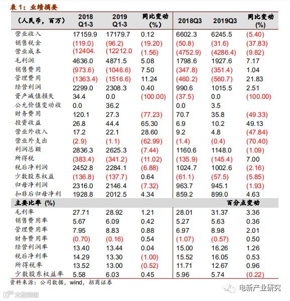 业绩增长符合预期:公司发布2019年三季报,报告期内,收入、归上净利润、扣非后归上净利润分别为171.80、21.46、20.13亿元,分别同比增长0.12%、-7.32%、4.34%。其中,Q3收入、归上净利润、扣非后归上净利润分别为62.46、9.45、8.99亿元,分别同比增长-5.40%、-1.93%、4.63%。业绩增长符合预期。