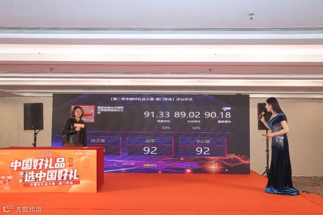 参赛产品非常符合龙年特色,性价比非常突出。在本次比赛中获得90.18分,荣获第六名!通过与点评嘉宾的互动中可知其出货期非常快,其主要优势是原创设计;同时本次大赛在“杭州礼品展”视频号同步直播,也有很多未到达现场的采购商们向我们咨询产品信息,已陆续对接中;仟信慈艺今年也报名了我们全国多场巡回展,有意咨询合作的可以与我们联系!