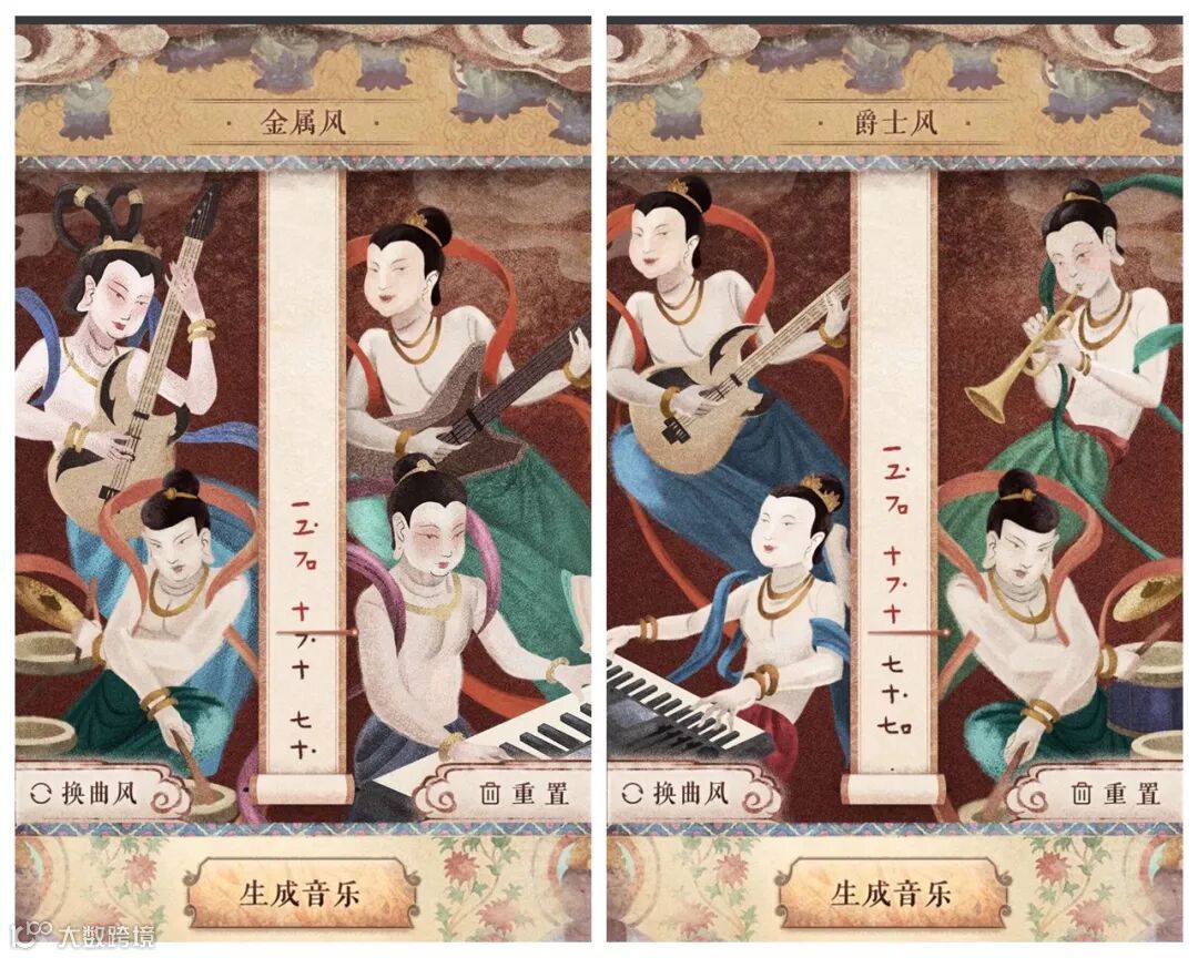 创意定位,将敦煌壁画与音乐结合,展现了一种古曲与流行音乐碰撞出的火花,以让用户做“制作人”的方式加入互动,最后引出活动宣传。
