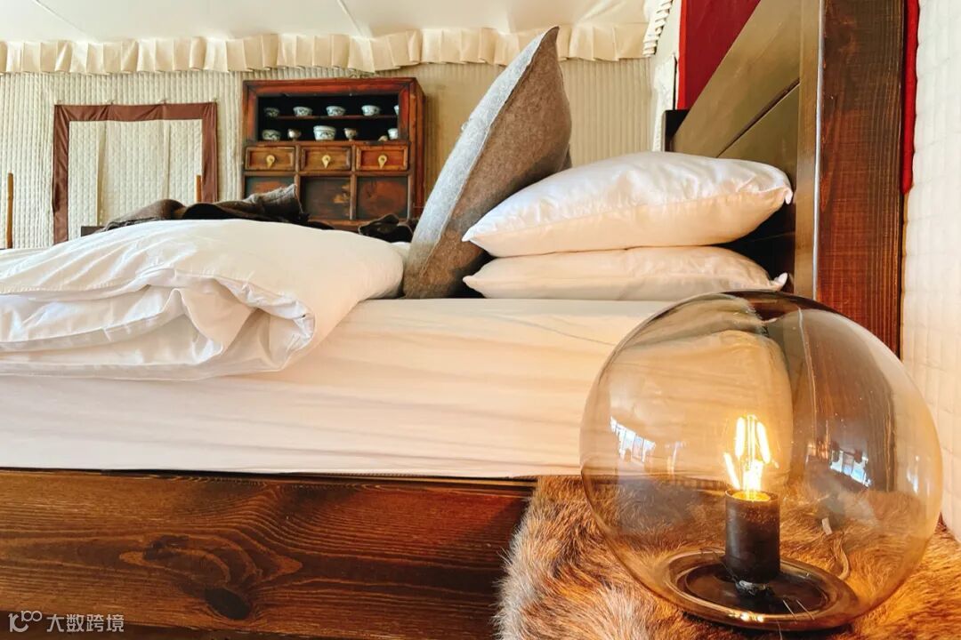 房间从风格别致的藏式家具和古董摆件,到抛光实木地板和优质欧式睡床寝具,每一毫厘都倾注了营地主人对营地品质的追求,和对大自然的崇拜。