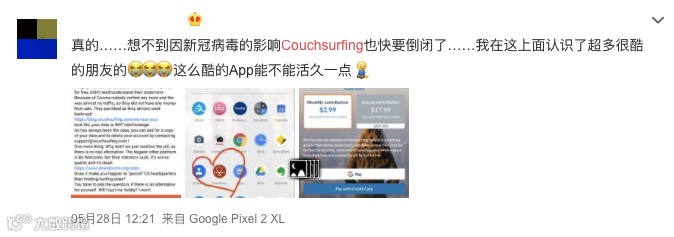 比起曾经承诺免费的平台开始收费,老用户更在意的是以捐款订阅的手段对用户实施数据“绑架”——不能登陆账户意味着无法对自己的个人资料进行删除和修改,也不能和通过Couchsurfing建立联系的朋友取得联系。