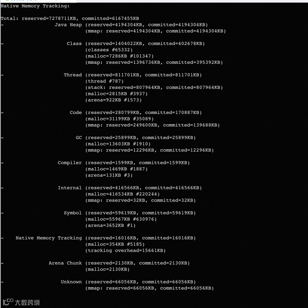通过NMT查看内存使用,基本确认是堆外内存泄露。