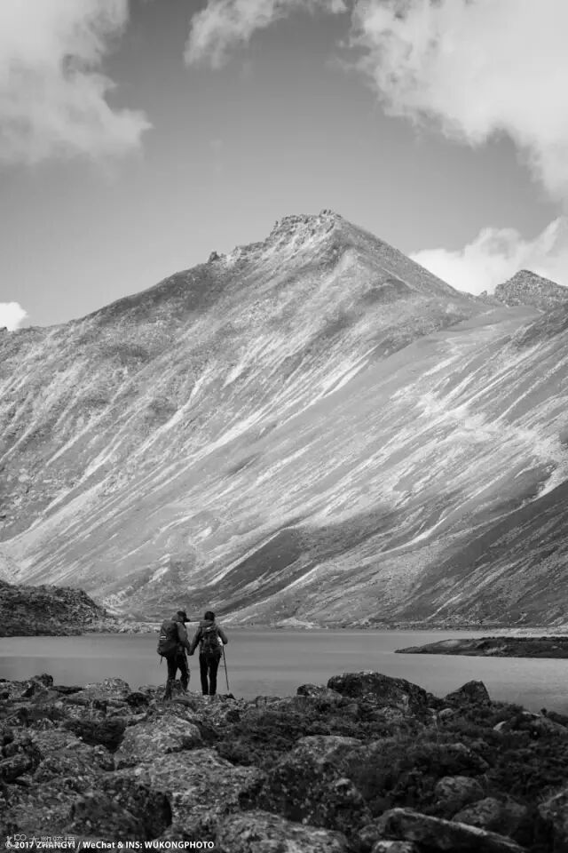 库拉岗日峰的冰川孕育了大大小小几十个高山湖泊,这些湖泊在高原上通常被人们称为“海子”。我喜欢“海子”这个称呼,有一种琼浆玉液自天上来的既视感。当你行走在海拔五千米的高原上,一望无际的乱石路让你始终处在崩溃的边缘,此时,你的眼前忽然一亮,碧玉般的海子从山坡背后闪现,你一切的烦恼和劳累都在此刻被抛到九霄云外。前一秒钟你所想的事情,也在此时忘得一干二净。
