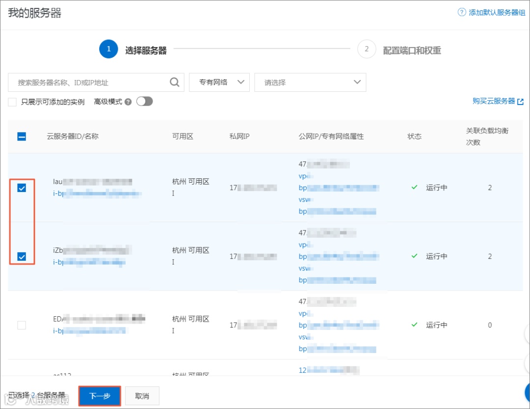 在使用负载均衡服务前,必须至少添加一台默认服务器接收负载均衡转发的客户端请求。