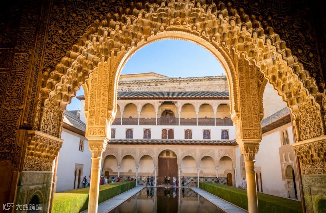 主要宫殿佩德罗一世宫(Palacio de Pedro I)虽是天主教国王的寝宫,却拥有华丽的伊斯兰元素。尤其是大使厅(Salón de Embajadores),眼花缭乱的石膏雕饰覆盖了每一寸墙面,头顶半圆形的金色穹顶被形象地称为“Media Naranja(半个橙子)”。