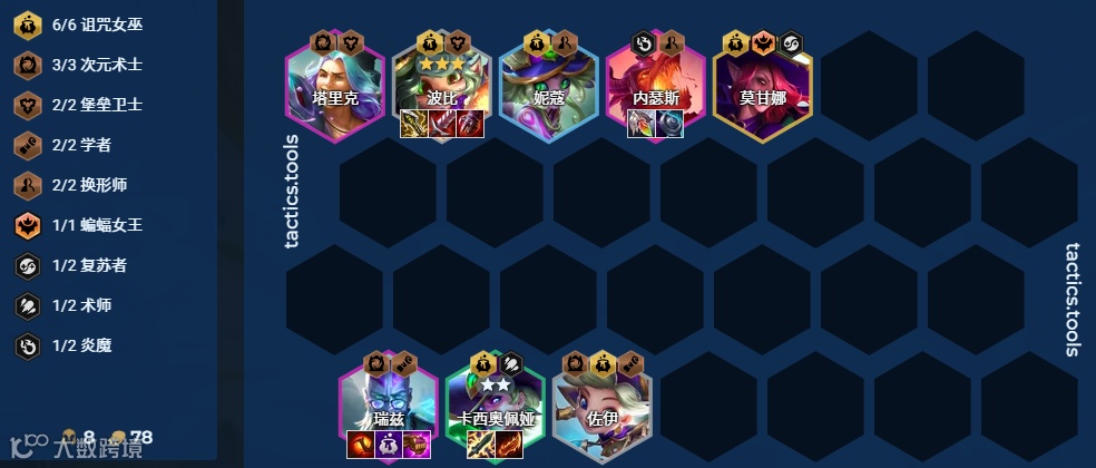 7级:4女巫+2堡垒+2术士+3次元+2学者