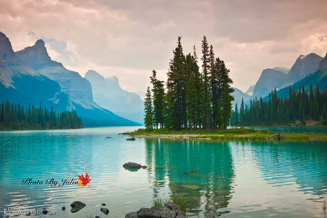 玛琳湖最热门的活动当然是90分钟的乘船游湖之旅,前往著名的精灵岛(Spirit Island)。精灵岛清秀脱俗宛如仙境,岛上点缀着苍翠笔直的针叶林,造型十分美丽。照片经常印在Jasper国家公园的纪念风景明信片上,可称作贾斯珀国家公园的象征。