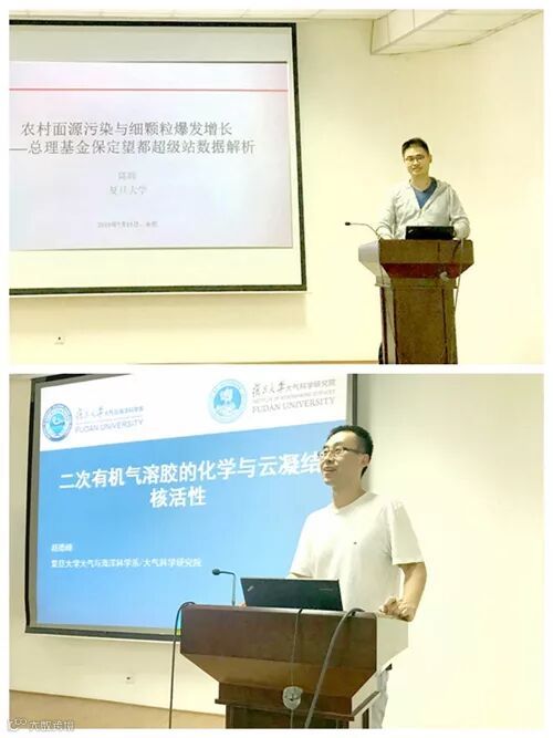 报告会上,陈晖研究员介绍了位于北京西南传输通道上总理基金下设四个超级站之一——保定望都大气超级观测站的基本情况,通过对2017-2019年两次秋冬季重污染事件观测及数据解析,为京津冀重污染成因提供了新的解释。赵德峰研究员主要介绍了在德国于利希研究中心工作期间开展的研究内容,重点关注二次有机气溶胶的形成、转化和理化性质的变化以及成云活性对气溶胶气候效应的影响。
