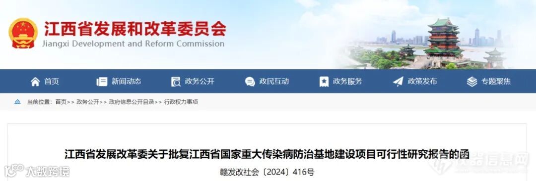 近日,江西省发展和改革委员会发布了《关于批复江西省国家重大传染病防治基地建设项目可行性研究报告的函》,同意建设江西省国家重大传染病防治基地建设项目(项目代码:2309-360000-04-01-828239),项目总建筑面积为68900平方米,项目总投资为55969.49万元,资金来源为积极申请中央预算内投资,不足部分由省财政资金(医院事业收入)落实。同时,配置医疗设备61类321台(套)、医疗信息化硬件6类109台(套),并配建室外工程。