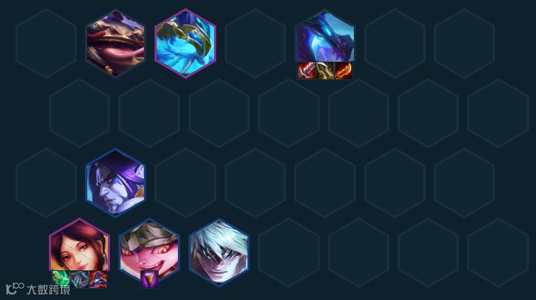 如果能搜到猪妹就用她替代鳄鱼 完成这三个目标之后我们就可以攒钱升8了。8人口我们再补上佐伊给主C劫提供全能吸血效果,并且搜出2星劫,这样我们的阵容就基本成型了。