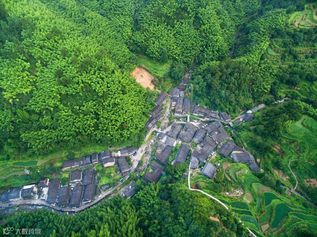 这里的村舍从一个石板桥的两侧向山依次搭建,屋瓦毗邻,白砖墙青黑色瓦,古朴而又秀美。
