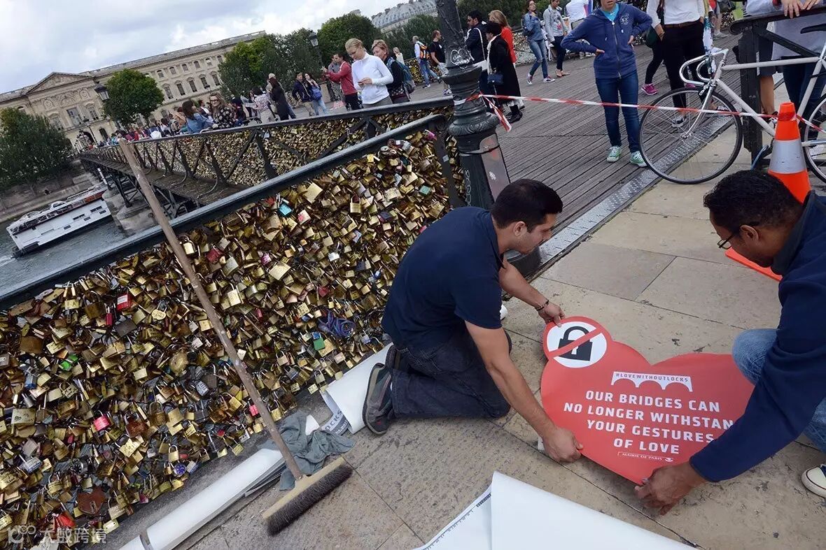 从那之后,巴黎政府就开始重视这个问题了。毕竟艺术桥的路灯上都被挂上锁了啊,还有的把自己的锁挂在别人的锁上,我觉得你们这样做很不好啊!