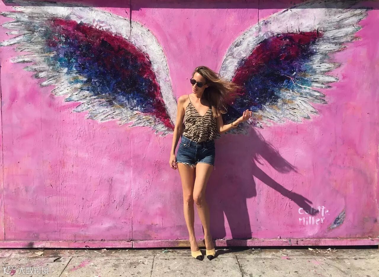 这对漂亮的彩色大翅膀是艺术家Colette Miller于2012年开始进行的“全球天使翅膀慈善项目”。第一对翅膀出现在洛杉矶市中心Art District,之后在好莱坞、比佛利山、甚至连墨西哥和澳大利亚街头墙上也有了这对翅膀。