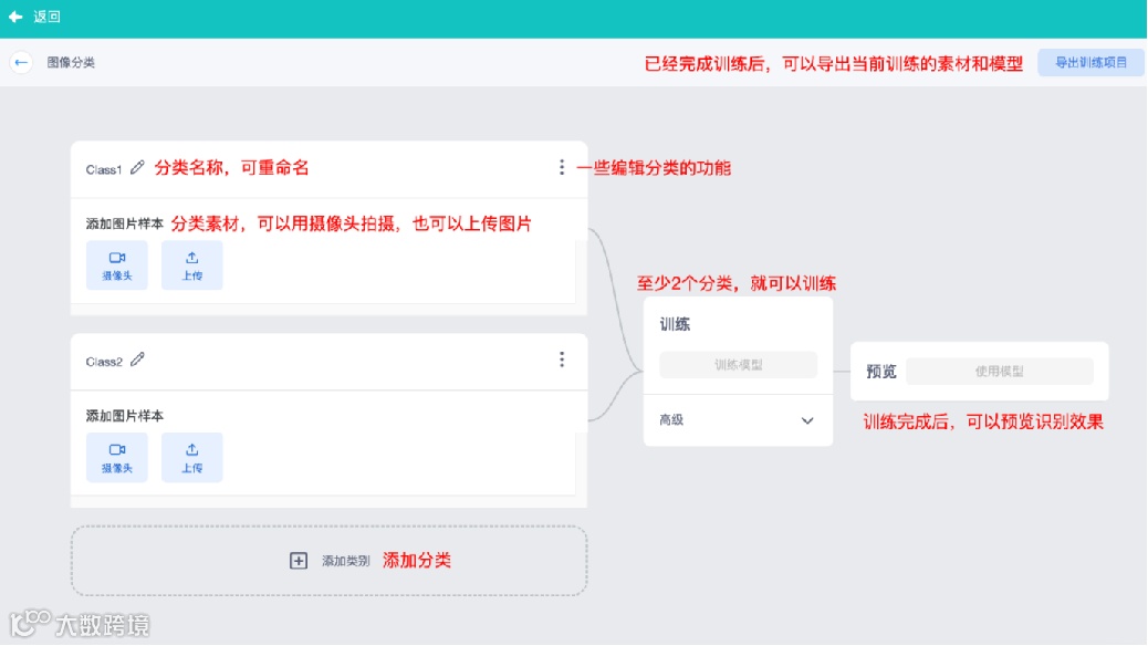 点击进入后可以开始进行图像的训练,界面的使用方法如下: