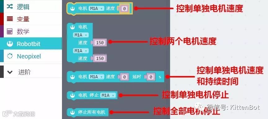 使用很简单,只需要把直流电机积木拖出来。如图,控制电机运动