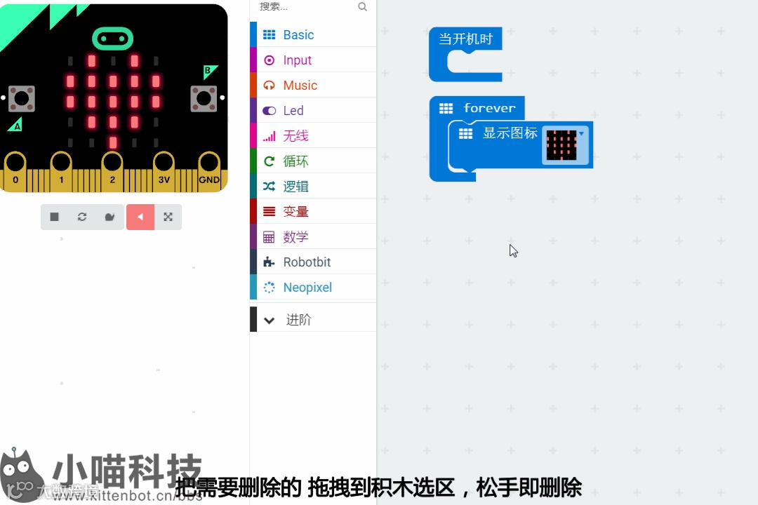 今天喵人儿教大家如何控制Micro:bit的点阵,可以说Micro:bit的点阵控制做的很赞,如果之前有些友友用过arduino控制点阵屏就知道,接线和控制都特别麻烦,现在Micro:bit已经把所有有的步骤节省了,让你专注在编程世界,快速享受编程的结构。所以非常适合中小学生编程入门。