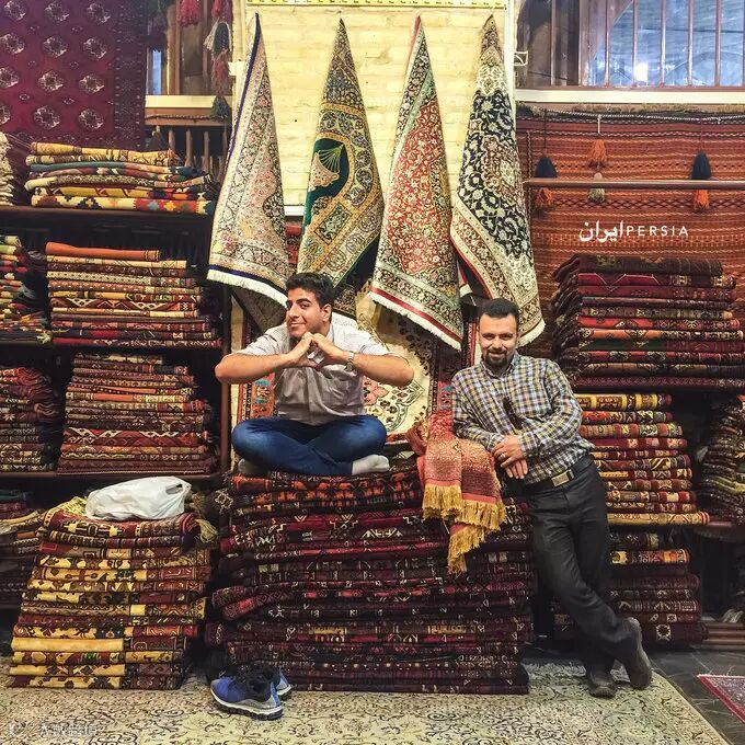 同行小伙伴JK此行一大目标就是要买一条波斯地毯。我们在伊斯法罕的一家地毯店陪她耗了两个小时才终于挑到了一块合适的地毯,成交价1500美金。贵吗?见人见智吧。我在这也见识到所谓的真丝地毯,表面有丝绸的亮丽,质感上乘摸上去非常柔顺舒服,图案也非常华美。
