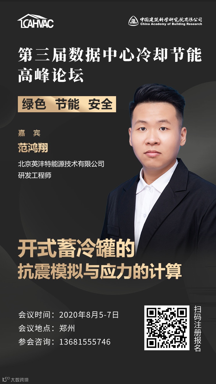 北京英沣特能源技术有限公司连续两届受邀出席数据中心冷却节能高峰论坛并做大会发言,本届论坛上英沣特研发工程师范鸿翔分享《开式蓄冷罐的抗震模拟与应力计算》。报告主要围绕数据中心常用设备-蓄冷罐设备(开式)予以展开,其一方面以优化设计、保障安全为中心,明确设计过程中重要关注点;另一方面针对设计规范中未明确内容,予以分析论证,建议合理的设计参考内容。