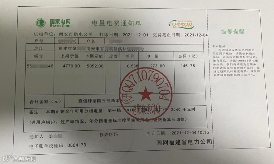 2:水电费账单(在小程序/app查账单时,有时地址会带***)