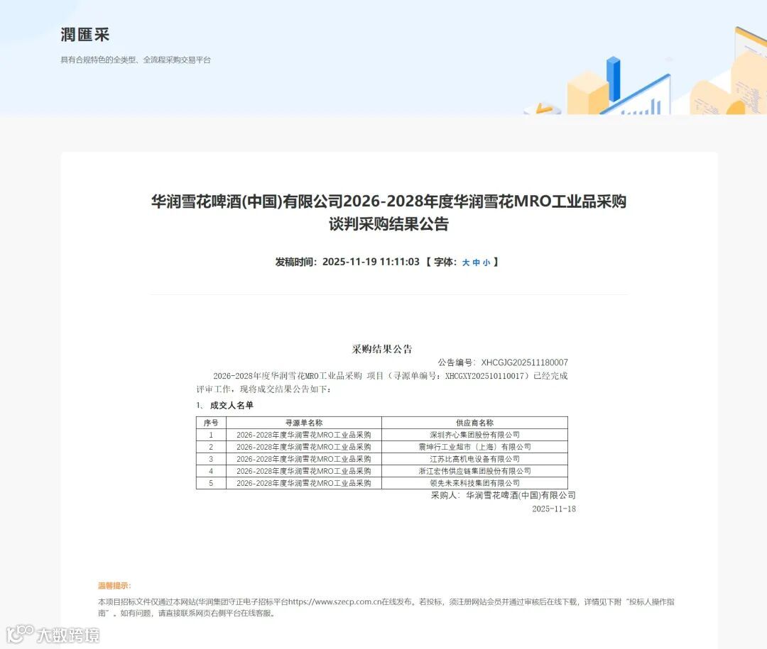 此次成功中标,是华润集团对我们在工业品供应领域专业能力与服务品质的充分信任与认可。这份来自大型央企的肯定,既是对我们综合实力的重要见证,更是对我们未来服务的深切期许。