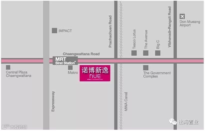 诺博新逸(Noble Nue)所处的Chaengwattana地区是一个快速增长的经济的枢纽领域。全新的政府办公大楼、高端写字楼、大型购物中心、中小型商店全部齐聚于此。Chaengwattana路是该地区一条重要的主干道,连接着曼谷市中心和暖武里,与Phaholyothin路、Vibhavadi-Rangsit路等许多重要道路互相接连,从Chaengwattana驶向曼谷最重要的高速公路——Si Rat高速只需短短的2分钟。