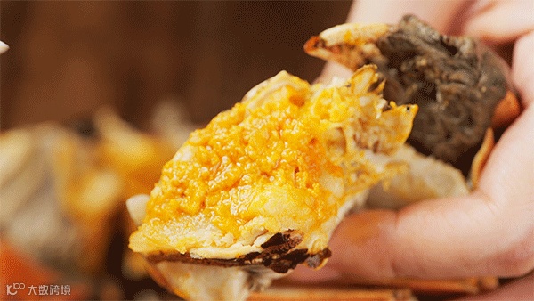 掰开蟹壳,对着满满的蟹黄猛吸一口