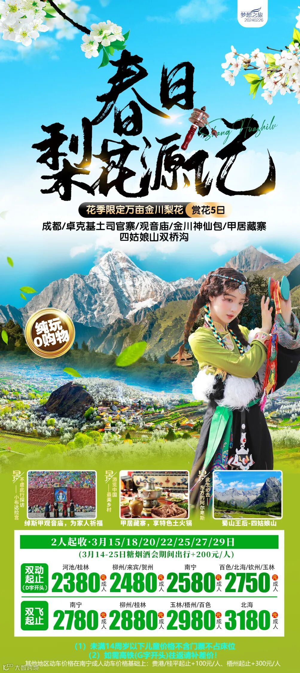 3180元/人六天:3月3/8/10/15/17/22/24/29/31日