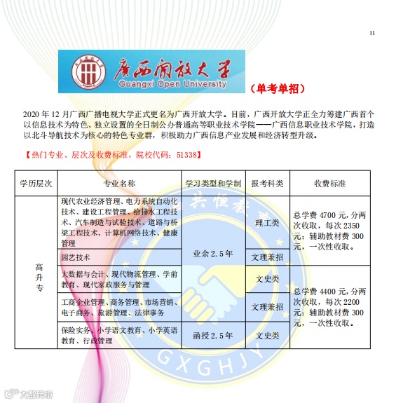 备注:报名成人高考仅需缴纳报名费(代广西招生考试院收取)。由函授站统一网上报名。