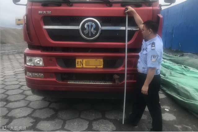 获取相关线索后,专案组民警火速赶往钦州某码头对该嫌疑牵引车进行仔细勘查,发现车辆引擎盖支撑杆处有碰撞裂痕,于是立即控制该车辆和驾驶人韦某。
