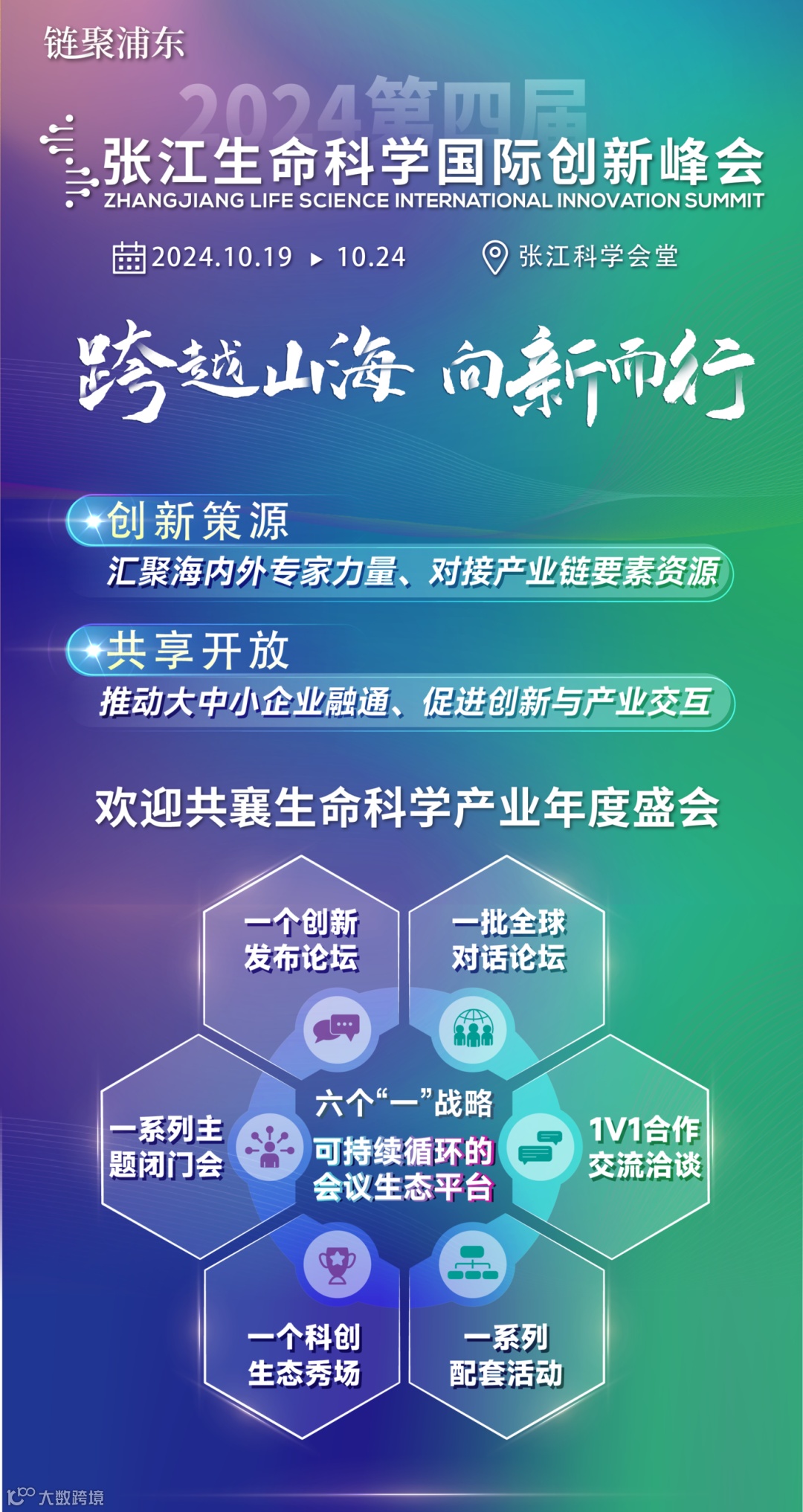 10月19日-24日,由上海张江(集团)有限公司主办、上海浦东生命科学产业发展有限公司等联合承办的2024第四届张江生命科学国际创新峰会将在张江科学会堂举行。本届峰会以“跨越山海 向新而行”为主题,汇集海内外专家力量,对接产业链要素资源,推动大中小企业融通,促进创新与产业交互,欢迎共襄生命科学产业年度盛会。