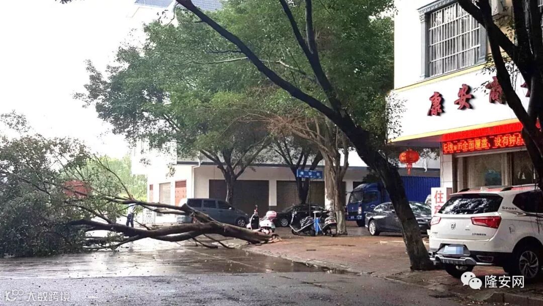 昨天下午,隆安多地遭遇大风大雨,并伴有短时大风等强对流天气。在县城康安街,一棵大榕树被狂风暴雨连根刮倒,横在街头,甚是吓人,所幸没有造成人员伤亡。大风大雨天气,希望大家不要在大树下逗留,以免发生意外。