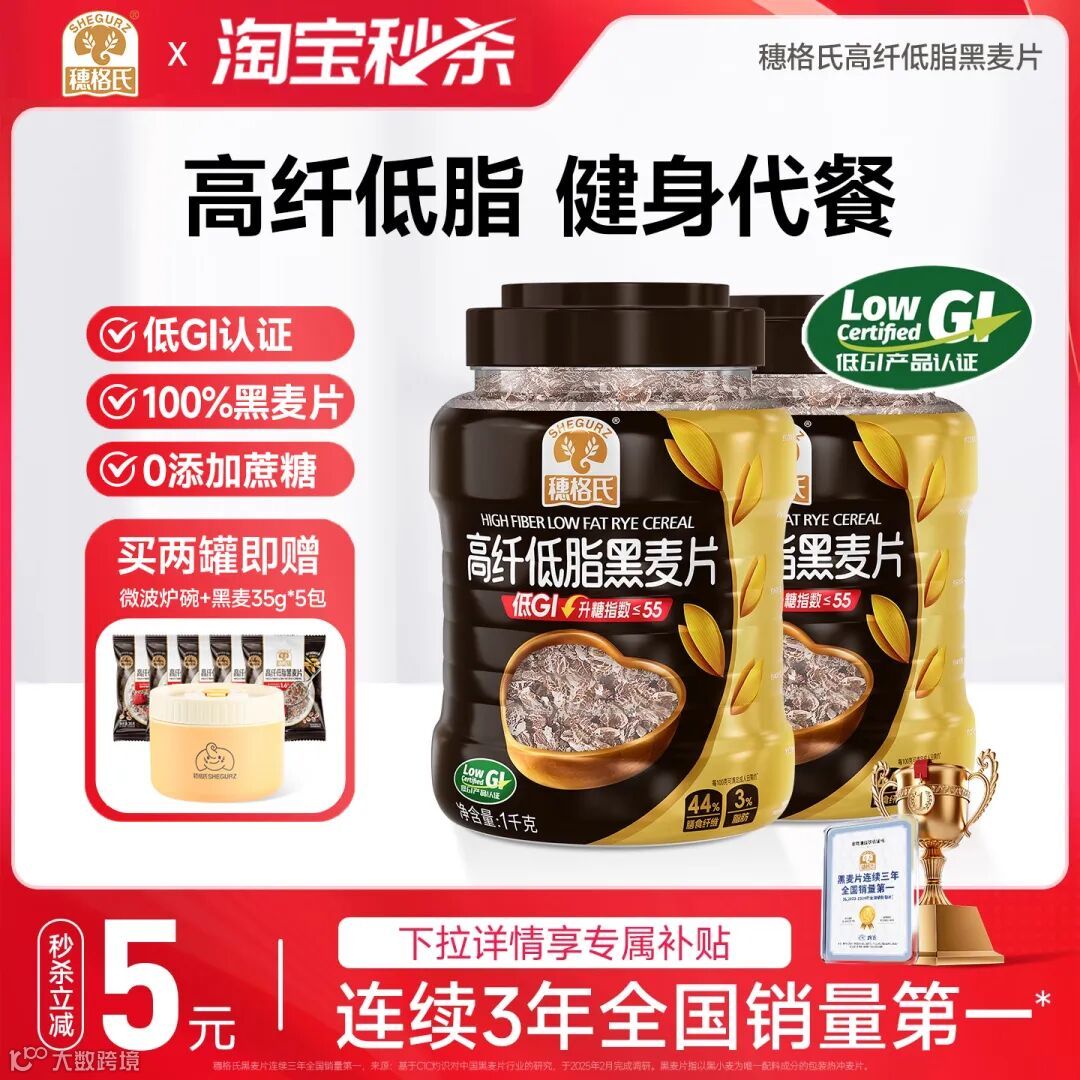 穗格氏黑麦片堪称健身党代餐宝藏!配料只有纯黑麦无额外添加,每 100 克仅 1.6 克脂肪,膳食纤维达 11 克,饱腹感强能扛饿。低 GI 认证不波动血糖,减脂期吃无负担。